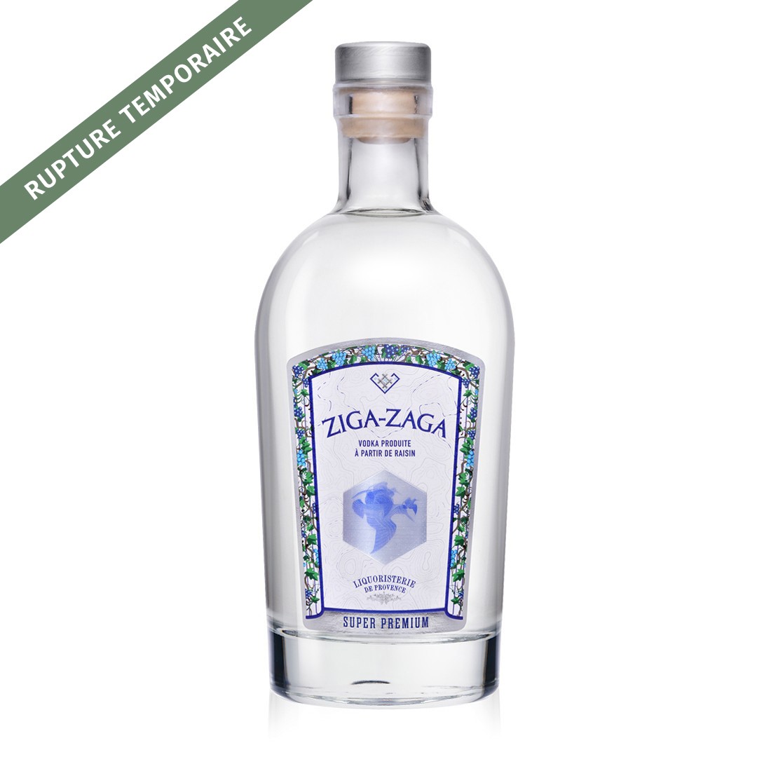 The alliance with the Château de Saint Martin, Cru Classé of Côtes de Provence with centuries of elegance, gives this new creation of La LIQUORISTERIE DE PROVENCE a fineness, a mastery of aromas, a balance close to perfection. Made from the distillation of grapes to have an exceptional raw material, Ziga-Zaga vodka offers a supple and fresh attack with a long finish enhanced by a slight fruitiness of grapes.